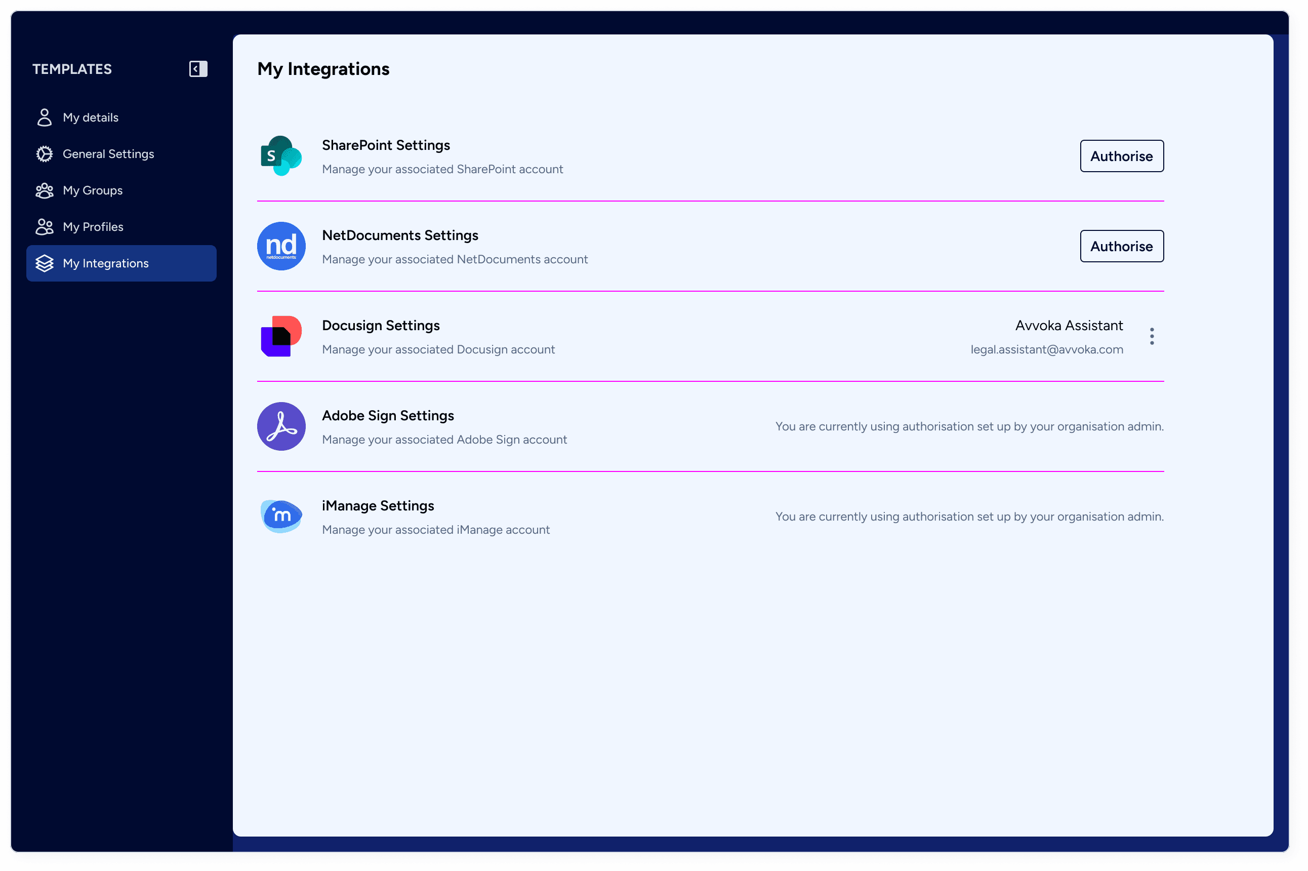 Connect Avvoka to your legal tech stack. Use native integrations via API or MCP to interface with AI, CRM, DMS and e-signing tools, while middleware enables extension to other internal and external platforms, keeping drafting connected end to end.